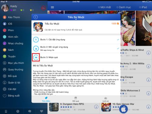 Bước 5: Sau khi cài đặt game (ứng dụng) bạn quay lại Appvn và click vào mục Bước 2