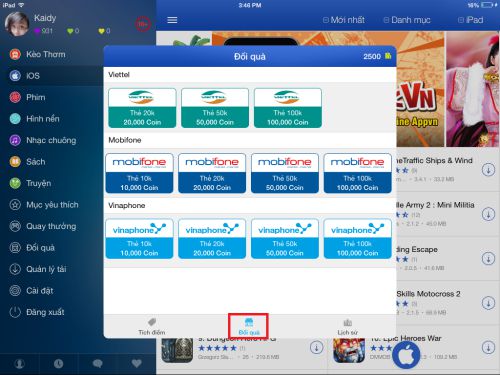 Bước 7: Khi tích lũy đủ số coin nhất định bạn có thể đổi thưởng tại mục Đổi quà
